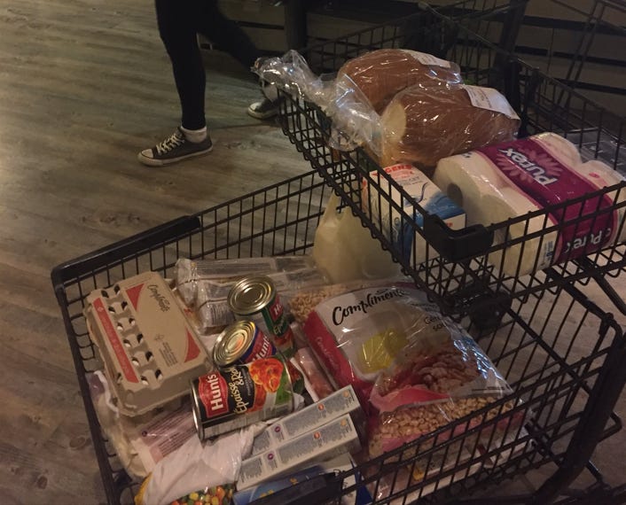 After paying full retail price at checkout, customers are often invited to donate food in a bin placed just beyond the tills. They already paid full prices for the food. The grocery chain has already collected its revenue and profit, no matter who eats the food.